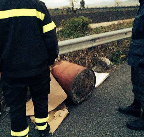 Diramazione Nola – Marigliano, fusto da 200 litri in strada