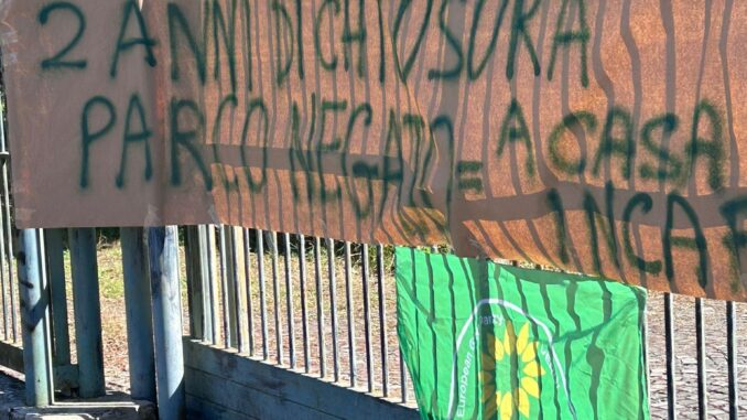 Flash mob dei consiglieri di Europa Verde della V Municipalità Rino Nasti e Luca Bonetti all’ingresso del Parco dei Camaldoli insieme al deputato Francesco Emilio Borrelli, per denunciare il grave stato di degrado in cui versa l’area verde più estesa della città.