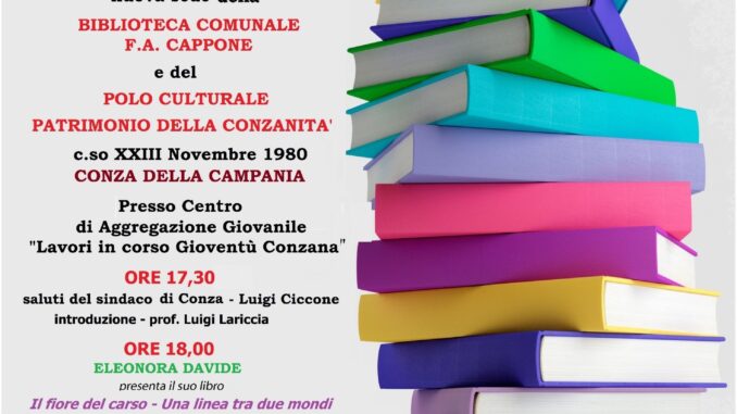 Alla cerimonia di taglio del nastro saranno presenti oltre alle istituzioni locali rappresentate dal sindaco di Conza della Campania Luigi Ciccone, anche il prof. Luigi Lariccia memoria storica della comunità conzana, che impreziosirà la manifestazione raccontando ai presenti il ruolo e l’importanza della biblioteca F.A. Cappone fondata dai conzani negli anni 70 durante i suoi 50 anni di vita, e tre illustri autori irpini che presenteranno in quest’occasione le proprie opere: alle 18,00 Eleonora Davide, presenta il libro “Il fiore del carso – Una linea tra due mondi” (Collana Rossoquadro), alle 19,00 Pasquale Gallicchio, presenta il libro “Niente è perduto” – (edizioni Delta 3), alle 20,00 Gerardo Bruno, presenta il libro “Il sogno del guerriero – Le forche caudine; La resa del guerriero”.