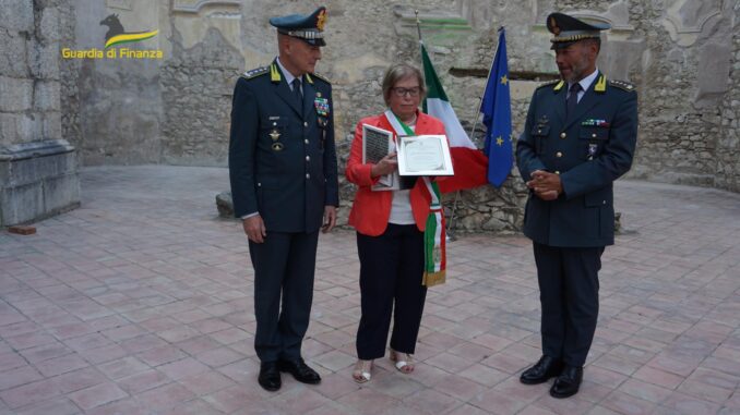 Il Sindaco di Sant’Angelo dei Lombardi – Prof.ssa Rosa Anna Maria Repole, dopo la lettura dell’atto deliberativo di conferimento, ha espresso nel corso della sua allocuzione parole di apprezzamento per l’attività diuturnamente espletata sul territorio dalle Fiamme Gialle e ha letto le motivazioni della onorificenza, consegnando una pergamena simbolica al Generale C.A. Vito Augelli. Ha poi sottolineato che il legame tra la comunità e il Corpo si è consolidato negli anni e recentemente rinvigorito anche con l’istituzione della Stazione del Soccorso Alpino, ulteriore testimonianza di vicinanza e di umanità.
