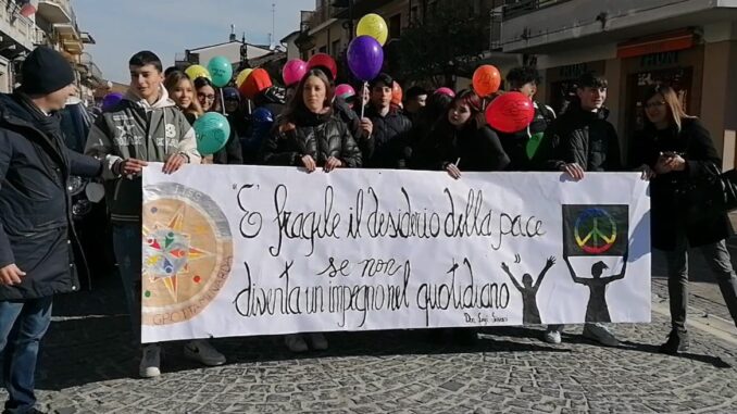 “È fragile il desiderio della Pace se non diventa un impegno nel quotidiano”. La frase dipinta dagli studenti dell’Istituto Superiore “Grottaminarda” su uno striscione racchiude tutto il senso della giornata dedicata alla Marcia della Pace a Grottaminarda.