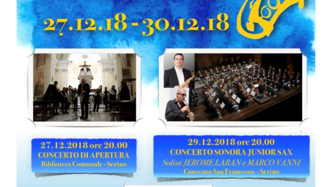 - Sabato 29 Dicembre, alle ore 20.00, Concerto orchestra Sonora Junior Sax e dei solisti di fama internazionale Jerome Laran e Marco Vanni presso il Convento Francescano di Serino;