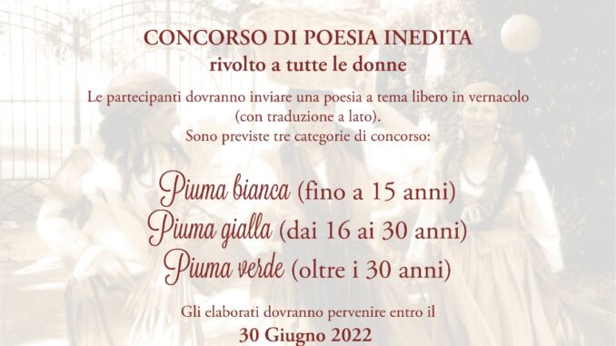 Il concorso è libero, e le poesie dovranno essere scritte in vernacolo (con traduzione a lato), verranno divise in tre categorie: