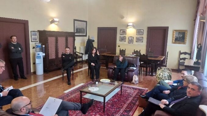 Riunione operativa a Palazzo Caracciolo tra il presidente della Provincia, Rizieri Buonopane, e i delegati esterni nominati dallo stesso presidente per attività di collaborazione e supporto.