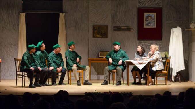 E’ un monologo acuto e penetrante nei significati sociali, in piena sintonia con l’ambientazione della performance in modalità green, con lo Spazzino-1, interpretato da Pasquale Tarantino, Spazzino– 2 del già citato Carlo Acierno, Salvatore, lo spazzino–poeta impersonato da Giulio Antonio Mugnano, l’eccentrico Pascuttella, il caporale della squadra e, naturalmente, ‘ Zi Vicienzo Esposito, tutti impettiti nel far sfoggio della divisa verde, con tanto di berretto d’ordinanza, allineati e … quasi militarizzati. E non può mancare in questa rassegna, la menzione di Nicola, interpretato da Stefano Colucci, che non sa a quale … santo votarsi per aiutare Don Raffaele Chianese, compositore e maestro di tromba, ma disoccupato in pianta stabile, oltre che Amalia, lo moglie di Don Raffaele, sempre alle prese con le difficoltà economiche di famiglia, interpretata da Carmen Miele. Ed Amalia, con tanta pazienza e buon cuore, grazie all’aiuto della scrupolosa e diligente figlia, Lisa, impersonata da Aurora Lippiello, riesce a mantenere in dignitoso equilibrio il mènage famigliare.