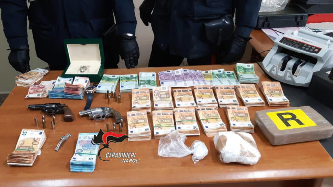 Il meccanismo è stato scoperto dai carabinieri della tenenza Casalnuovo di napoli e della stazione di Pomigliano che hanno sequestrato droga, soldi, armi e orologi.