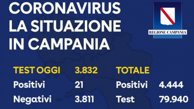 L’Unità di Crisi della Regione Campania comunica che sono pervenuti i seguenti dati: