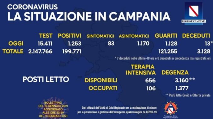 * 7 deceduti nelle ultime 48 ore e 6 deceduti in precedenza ma registrati ieri