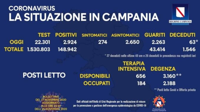 * 37 deceduti nelle ultime 48 ore e 26 deceduti in precedenza ma registrati ieri a seguito di accertamenti
