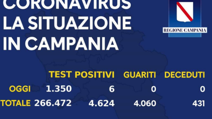 Coronavirus. Oggi 6 positivi in Campania su 1.350 tamponi.
