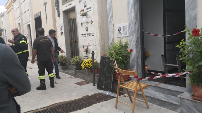 Durante la visita il pavimento della cappella gentilizia è profondato e le due donne, madre e la figlia del defunto hanno fatto in volo di quasi due metri. Sono finite nell’ossario.
