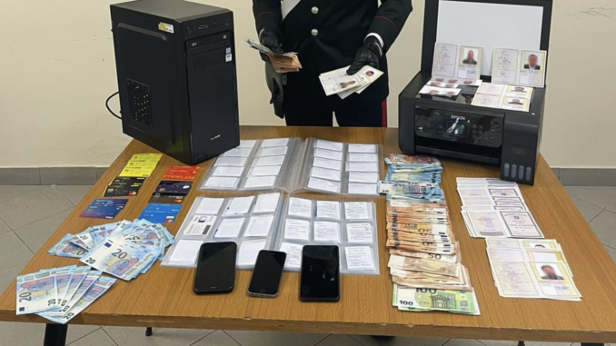 I carabinieri della stazione di Gragnano hanno arrestato in flagranza di reato un 26enne del posto per spendita, fabbricazione e introduzione nello Stato di banconote e documenti contraffatti. Nella sua abitazione hanno rinvenuto 39 carte di identità false, 44 banconote da 20 euro contraffatte e 4500 euro in contante di vario taglio la cui origine non è stata chiarita.