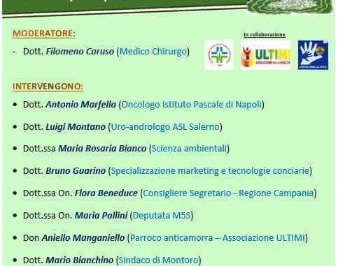 Lunedì 8 ottobre, alle ore 18.30, presso l’ex sala consiglio comunale a Torchiati di Montoro si terrà l’interessante convegno “In questa valle di lacrime”. L’evento è organizzato da Isde-medici per l’ambiente, Ultimi e Lotta per la Vita. A moderare il dibattito il dott. Filomeno Caruso, a discutere del problema dell’inquinamento e sul come risolverlo ci saranno i dottori Marfella e Montano, la dott.ssa Bianco, il dott. Guarino, le onorevoli Beneduce e Pallino, don Aniello Manganiello e il sindaco di Montoro dott Bianchino. La cittadinanza è invitata a partecipare.