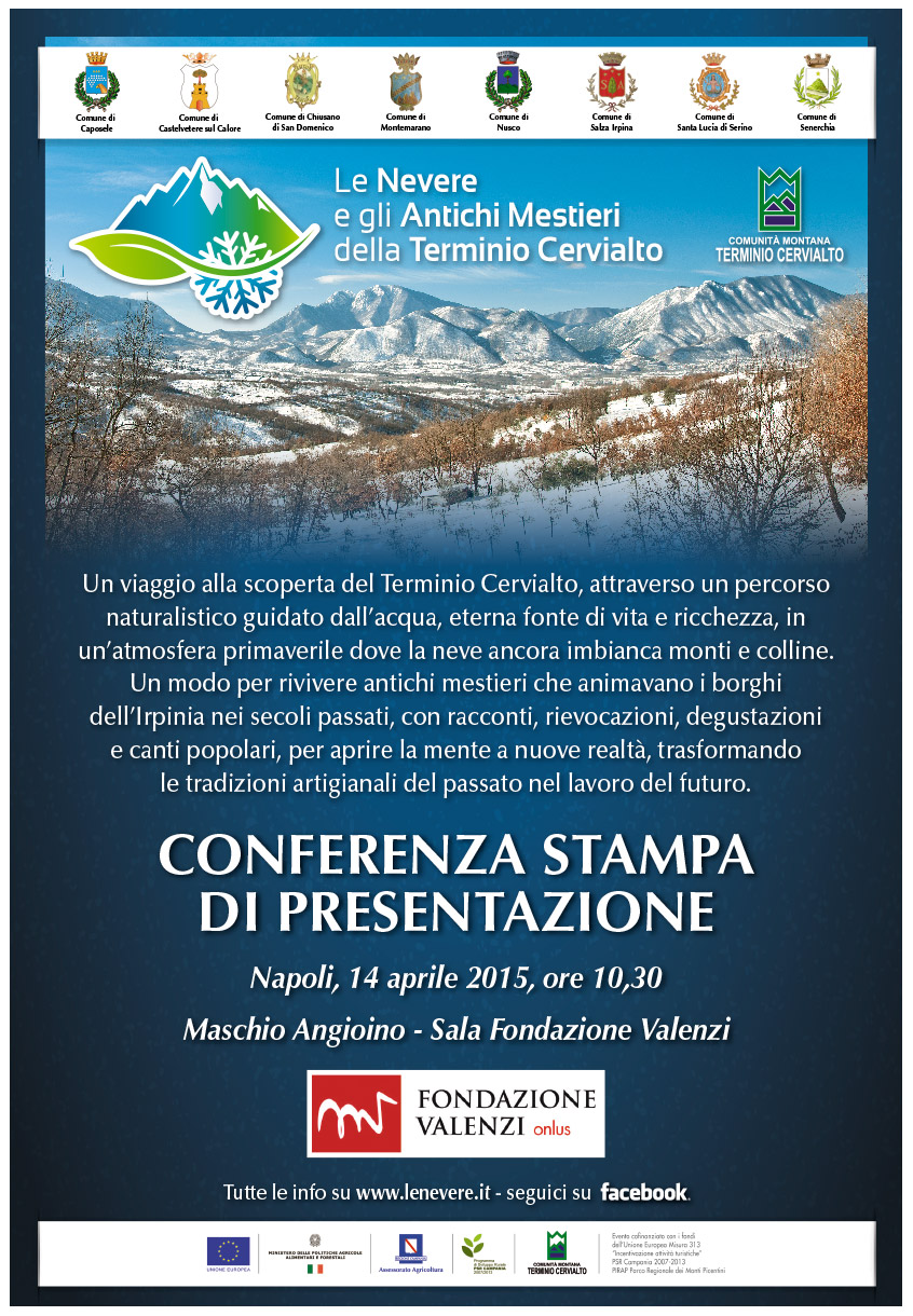Martedì 14 aprile, alle ore 10,30, presso la Sala Conferenze della Fondazione Valenzi al Maschio Angioino, conferenza stampa di presentazione del progetto “Le Nevere e gli antichi mestieri della Terminio Cervialto”.