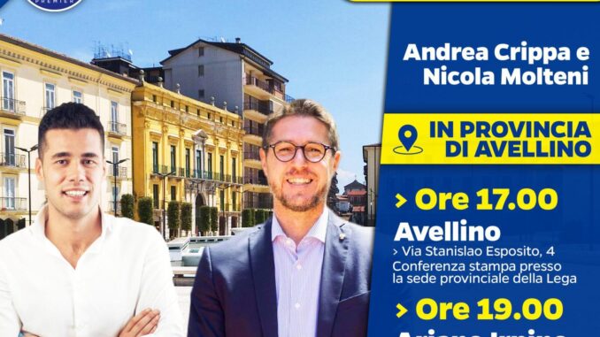 Lunedì, 29 giugno ore 17:00, in occasione della visita ad Avellino e Ariano Irpino del vice segretario nazionale on. Andrea Crippa, è convocata conferenza stampa presso la sede provinciale della Lega in via Stanislao Esposito 4, Avellino. Intervengono, oltre al vice segretario, il segretario regionale on. Nicola Molteni e il senatore Pasquale Pepe, coordinatore provinciale e responsabile nazionale del Dipartimento Politiche per Mezzogiorno della Lega. A seguire il vice segretario Crippa si recherà ad Ariano Irpino per incontro pubblico alle ore 19:00, presso “Villa Kristall” in via Serra 9.