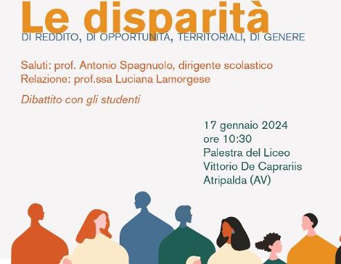 Siamo lieti di informare che Mercoledì 17 gennaio alle ore 10.30 l’ex Ministra degli Interni Luciana Lamorgese incontrerà gli alunni delle classi quinte del Liceo De Caprariis di Atripalda presso la sede centrale dell’Istituto, per dialogare con loro sul seguente tema: “Le disparità – di reddito, di opportunità, territoriali, di genere”.