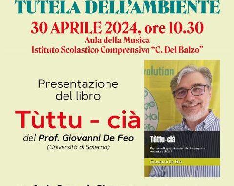 “Quest’anno il progetto di educazione ambientale è diventato “maggiorenne”, essendo diciotto anni che è stato partorito dal cuore e dalla mente di Mr. Greenopoli. La sostenibilità per essere praticata ha bisogno di “condivisione” ed è per questo che bisogna incontrare le persone aperte al cambiamento. A scuola ci sono proprio le persone giuste per parlare di cambiamento di comportamenti a partire da una nuova presa di coscienza ecologica che vada oltre i pregiudizi. Il libro Tùttu-cià si propone come manuale operativo e filosofico di questo cambiamento”. La dichiarazione dell’autore del libro Giovanni De Feo.