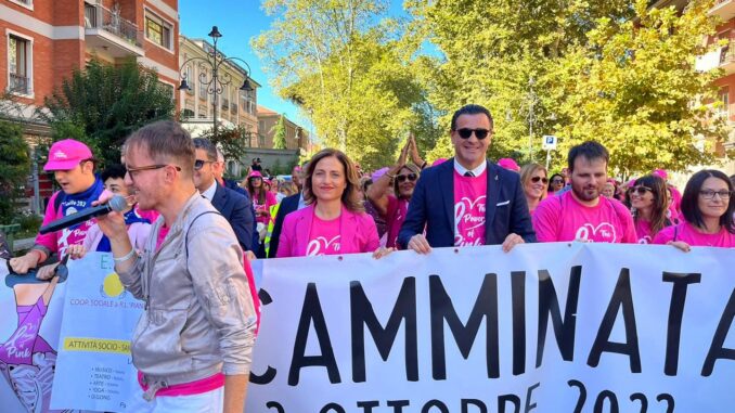 Camminata Rosa, manifestazione organizzata dalle associazioni Amdos, Amos e Noi in Rosa, in accordo con il senologo e chirurgo Carlo Iannace allo scopo di promuovere l’importanza di controlli periodici, autopalpazione e indagini diagnostico-strumentali, fin dalla giovane età, per una diagnosi precoce del carcinoma alla mammella. Questa mattina Mercogliano e Avellino ha visto sfilare centinaia e centinaia di partecipanti tutti in rosa. La marcia per la vita si è snodata dal viale di San Modestino a Mercogliano, alla presenza di tutte le autorità cittadine, in testa il sindaco Vittorio D’Alessio, ma anche altri amministratori come Paolo Spagnuolo di Atripalda, Pasquale Giuditta di Summonte, la sindaca di Cervinara, Caterina Lengua, finanche Enrico Franza, primo cittadino di Ariano Irpino. Destinazione piazza Festa a rione Valle ad Avellino, dove ad attendere la carovana rosa c’era la fascia tricolore del capoluogo, Gianluca Festa.
