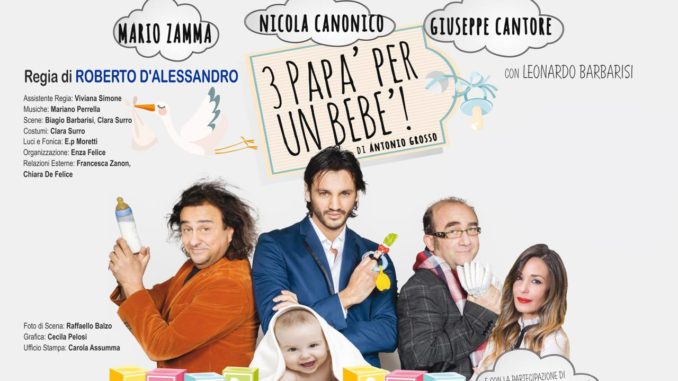 Arriva in Irpinia lo spettacolo Tre papà per un bebè. Scritto da Antonio Grosso con la regia di Roberto D’Alessandro e prodotto dalla Good Mood di Canonico e dalla Problem Solving di Mauro Atturo, ha come protagonisti Mario Zamma, Nicola Canonico, Giuseppe Cantore e Alessia Fabiani. Finale (reale) inaspettato il giorno della prima. Uno dei protagonisti, Nicola Canonico approda quindi nella sua amata Irpinia. Ecco gli appuntament :
