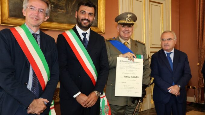 Nell’ambito delle celebrazioni del 4 novembre, Festa dell’Unità Nazionale e Giornata delle Forze Armate, alla presenza delle massime Autorità civili, militari e religiose il Dott. Antonio Grilletto, colonnello dell’Esercito Italiano, ha ricevuto l’onorificenza di Commendatore dell’Ordine al Merito della Repubblica Italiana. La suggestiva cerimonia ha avuto luogo nel Salone delle Muse del Palazzo di Governo. A consegnare la più alta onorificenza della giornata Erasmo Scotti, delegato dal Sindaco di Nola Carlo Buonauro ed il dott. Claudio Palomba, Prefetto di Napoli. Per la circostanza si è unito alla consegna il Prof. Gaetano Manfredi, Sindaco di Napoli, per l’amicizia e la nolanità che lo legano all’insignito. Durante la consegna un fuori programma, voluto dal Prefetto, ha “rotto” il protocollo rigido della cerimonia allorquando ha chiesto al premiato di tratteggiare la figura del Sindaco da studente e cittadino nolano.