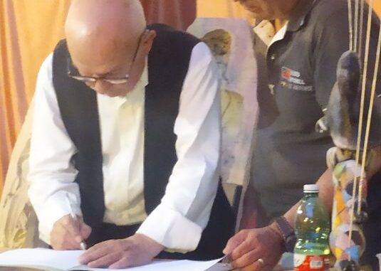E’ lo sfondo, in cui si è dipanato il dialogo tra Ezio Flammia e Carmela Maietta, giornalista de Il Mattino, con attenzione mirata e dettagliata sulle maschere ludiche, collegate al top delle usanze e consuetudini carnevalesche, in specie del teatro nella Commedia dell’Arte, oltre che sulle maschere connesse ai riti funebri del mondo antico. Un dialogo, per evidenziare il ruolo e il significato dei materiali utilizzati, per confezionare le maschere, frutto di studiata e collaudata lavorazione di cuoio, tessuti, stracci, ceramica, gesso e la cartapesta, il mix di carta e colla. Una cultura di lavoro artigianale e, al contempo, di ri-ciclo e ri-uso degli materiali, che ha nelle maschere di stoffa una delle più interessanti produzioni, con un bel lotto donato da Ezio Flammia, eclettico artista e poliedrico scenografo, alla struttura museale di via Senatore Cocozza.