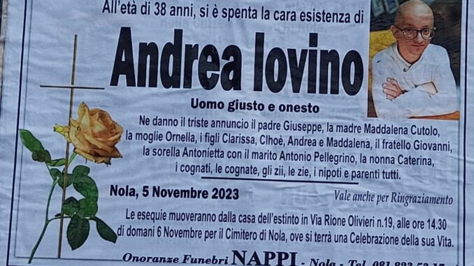 Il mondo dello spettacolo napoletano è stato colpito da una triste notizia con la prematura scomparsa dell’attore 38enne Andrea Iovino, originario di Nola. La notizia della sua morte ha rapidamente fatto il giro dei social media, suscitando un’ondata di cordoglio da parte di ammiratori e colleghi.