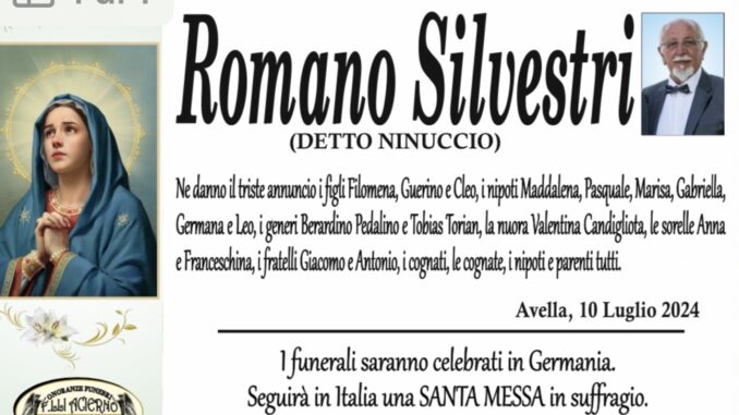 I funerali saranno celebrati in Germania. Seguirà in Italia una SANTA MESSA in suffragio.