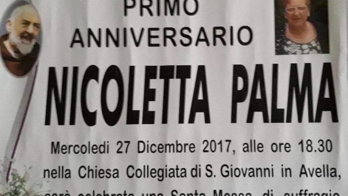 Si celebrerà presso la chiesa collegiata di San Giovanni in Avella mercoledì 27 dicembre 2017 alle ore 18,30 una Santa Messa in suffragio dell’anima benedetta di Nicoletta Palma.