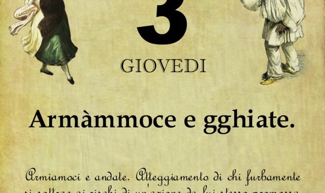 Armàmmoce e gghiate. Armiamoci e andate. Atteggiamento di chi furbamente si sottrae ai rischi di un’azione da lui stesso promossa, pur esortando gli altri a intraprenderla.