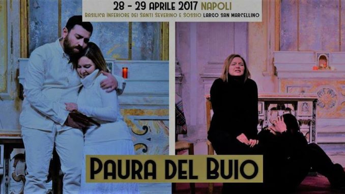 Torna a Napoli l’appuntamento con lo spettacolo “Paura del Buio”, prodotto da Il Demiurgo srls per la regia di Daniele Acerra, in programma venerdì 28 e sabato 29 Aprile 2017 alle ore 19.00 e alle ore 21.00 presso la Basilica inferiore della Chiesa dei SS. Severio e Sossio, in via B. Capasso n.22 (nei pressi di largo San Marcellino).