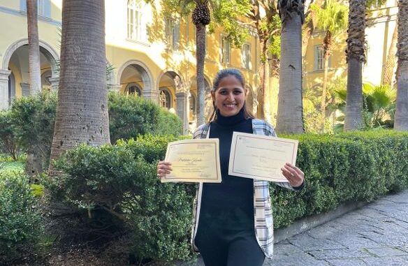 La dottoressa indiana Pratiksha Kavade è stata selezionata per la presentazione orale del suo progetto di dottorato in Medicina Traslazionale e, a seguito della presentazione, ha ricevuto sia il premio per la migliore ricerca riservato ai dottorandi stranieri, deciso dalla commissione docente esaminatrice, sia quello assegnato direttamente dai colleghi dottorandi del corso di Medicina Traslazionale dell’Università Vanvitelli. La consegna di tali riconoscimenti è avvenuta il 17 dicembre, presso la sede dell’Ateneo, a Napoli, nel corso del PhD Day, momento di confronto e condivisione di conoscenze ed esperienze tra dottorandi.