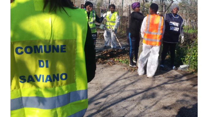 Sono da ieri a lavoro sul territorio del Comune di Saviano i cittadini stranieri che hanno presentato istanza di riconoscimento della protezione internazionale ospitati nei due centri, impiegati a titolo gratuito e su base volontaria nella pulizia e riordino degli spazi verdi; pulizia e riordino dei luoghi pubblici quali piazze, rotatorie, strade; pulizia e riordino di edifici pubblici di proprietà comunale quali sede comunale, biblioteca, scuole.