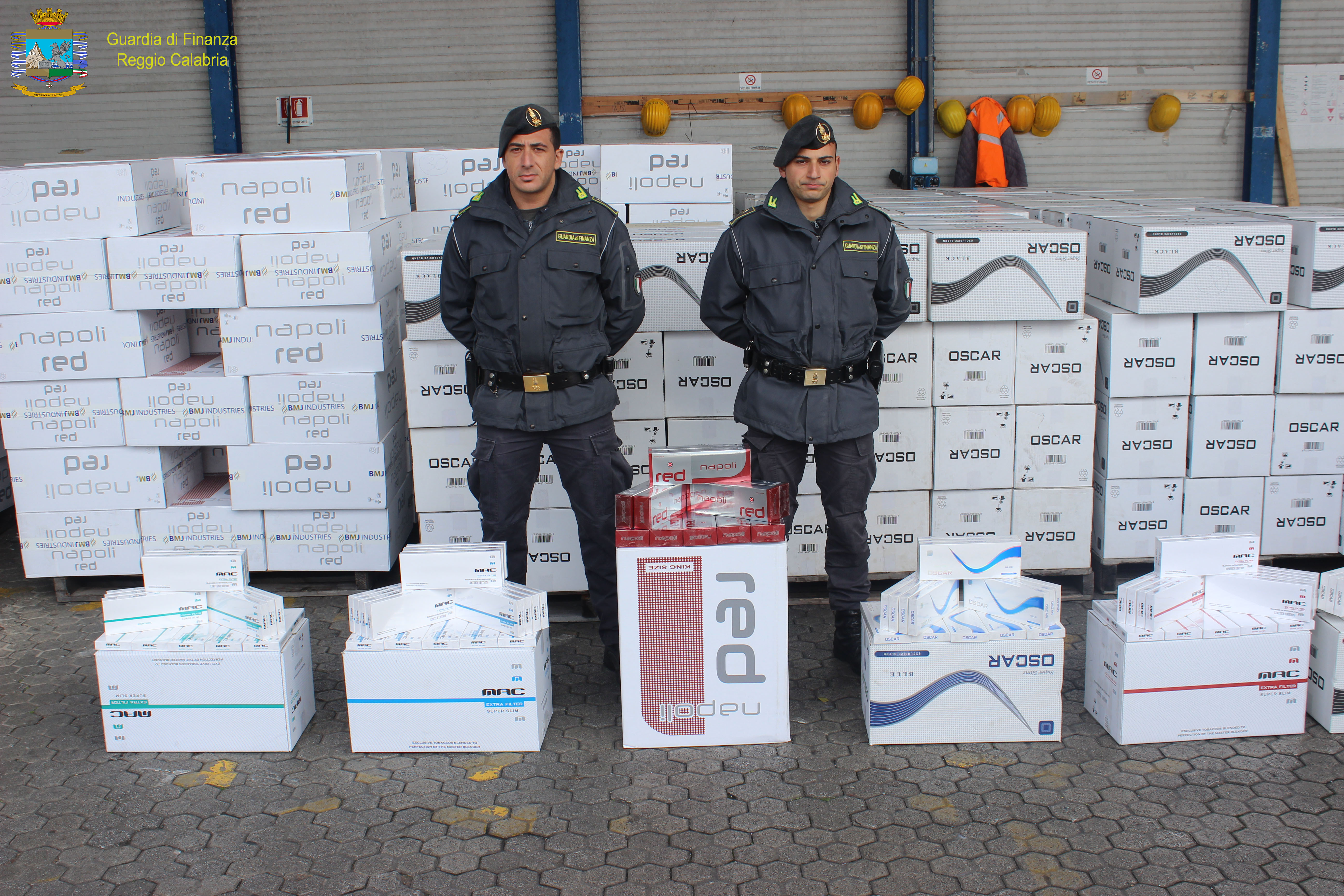Gli uomini del Comando Provinciale di Reggio Calabria, unitamente a Funzionari dell’Agenzia delle Dogane e dei Monopoli – S.V.A.D. di Gioia Tauro, hanno proceduto, presso il porto calabrese, al sequestro di 5 container carichi di sigarette recanti false indicazioni sull’origine e qualità, stivate in un container proveniente dagli Emirati Arabi Uniti. L’operazione, coordinata dalla Procura della Repubblica di Palmi, ha consentito, dopo una serie di complessi incroci documentali e successivi controlli, l’individuazione del carico sospetto. La merce, costituita da circa 52 tonnellate di sigarette recanti vari marchi non censiti, era destinata “formalmente” in Montenegro ma, presumibilmente,era pronta ad essere illecitamente introdotta nel territorio italiano. Tali sigarette, che non sono sottoposte ai rigidissimi standard di sicurezza europei, possono,potenzialmente, contenere materiali scadenti ovvero cancerogeni con chiare implicazioni per la salute del consumatore. Frequenti i casi, in tali contesti, di rinvenimento, nell’impasto finale della sigaretta, di livelli di nicotina, catrame, monossido di carbonio, piombo, cadmio e arsenico molto più alti rispetto a quelli presenti nelle sigarette prodotte con criteri europei. Si è proceduto, quindi, al sequestro delle sigarette per il reato di vendita di prodotti industriali con segni mendaci. I pacchetti di sigarette, allineati senza soluzione di continuità, costituirebbero una striscia lunga circa 220 km, la distanza che intercorre tra Roma e Arezzo!
