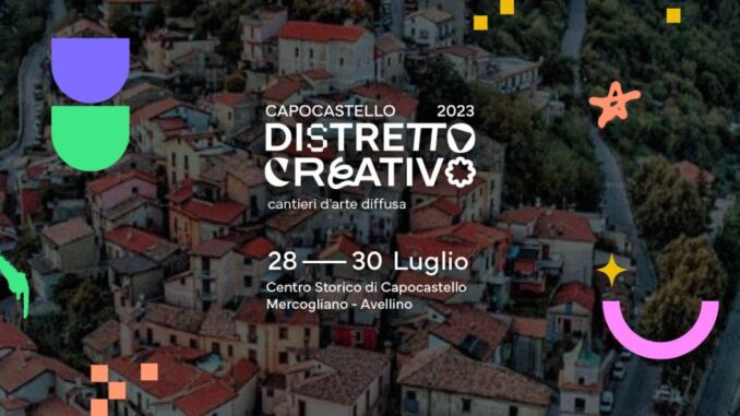 Tornano ad accendersi i riflettori su Capocastello, nel Comune di Mercogliano. Dal 28 al 30 luglio 2023, il caratteristico borgo medievale ospiterà opere ed installazioni artistiche create da professionisti e artisti provenienti da ogni angolo d’Italia nell’ambito della prima edizione di Capocastello Distretto Creativo, manifestazione promossa da Visit Irpinia con la collaborazione del Comune di Mercogliano, della Pro Loco Mercogliano, dell’associazione Lumanera, dell’associazione Zeza di Mercogliano, della Misericordia del Partenio e del Forum dei Giovani di Mercogliano.