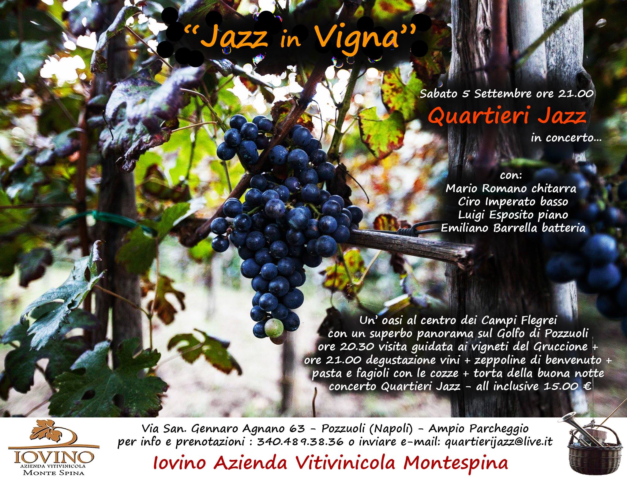 Per chi voglia ritrovare i toni caldi dell’estate, sospesi tra passato e presente, in un luogo fuori dal tempo e dal caos cittadino, e la medesima forza innovatrice e battagliera di quei ritmi, può recarsi sabato 5 settembre, a partire dalle 20.30, all’azienda vitivinicola Montespina di Antonio Iovino in via San Gennaro Agnano, 63 (Pozzuoli).