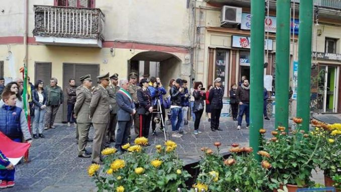 A quasi 100 anni dalla fine della GRANDE GUERRA, 1915/1918 anche Visciano rende omaggio ai suoi caduti deponendo una corona d’alloro al MILITE IGNOTO presso il monumento sito in piazzetta Sacramento, ex chiesetta dedicata, appunto, al SS Sacramento. Alla presenza di autorità rappresentate dal sindaco Gianfranco Meo, giunta comunale e rappresentati dalla forze armate (carabinieri e esercito) con quelle religiose, con il parroco PADRE MARIO FOGLIA, si è svolta la suggestiva cerimonia con l’intonazione degli inni di Mameli e del Piave da parte degli alunni della scuole di Visciano (Istituto Comprensivo Rossini e parificata del Villaggio del Fanciullo). Durante la cerimonia sono stati ricordati i momenti storici della GRANDE GUERRA con la vittoria sul’Austria. Manifestazione anticipati un giorno prima da comune ed altri enti per questioni tecniche. Nicola Valeri