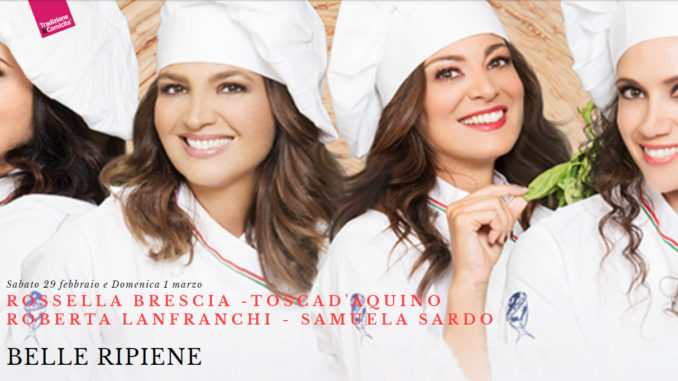 Una grande e allegra cucina in cui quattro amiche condividono risate, pensieri e due grandi amori, gli uomini e il cibo, croce e delizia delle loro vite. Le protagoniste della commedia “Belle ripiene” sono Rossella Brescia, Tosca D’Aquino, Roberta Lanfranchi e Samuela Sardo.