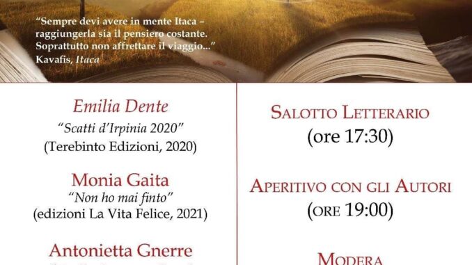 Alle 17.30 il salotto letterario e alle 19.00 l’aperitivo con gli autori. Appuntamento presso IL LUPO Pub Bistrot in Corso Umberto I, 67 ad Avellino.