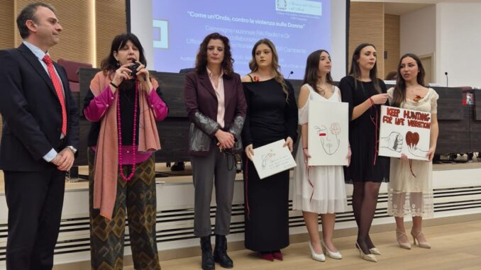 La campagna nazionale di Radio Uno e del Giornale radio Rai1 “Come un’onda” approda ad Avellino, in nome della sensibilizzazione e della prevenzione, per contrastare la violenza sulle donne; una campagna fortemente sostenuta e accolta dalla Dirigente dell’AT di Avellino, Fiorella Pagliuca, che, ai microfoni della trasmissione radiofonica pomeridiana “Il pomeriggio di Radio 1” si mostra entusiasta della giornata di approfondimento, di dibattito, per poter affrontare direttamente con le nuove generazioni il tema della violenza sulle donne, che è percepito come attuale e necessario e si innesta, a buon diritto, nei percorsi scolastici di cittadinanza, di autoconsapevolezza, finalizzati all’ “autoregolazione delle proprie emozioni, dei propri sentimenti”. “I ragazzi” -sostiene sempre Pagliuca- “desiderano fortemente che a scuola trovi cittadinanza questo tipo di approccio a temi attuali, che la società ancora purtroppo fa registrare”. Così nell’auditorium dell’Istituto “Guido Dorso”, nella mattinata di ieri, 28 febbraio 2025, sono state accolte alcune Scuole della città, tra le quali anche la nostra Istituzione Educativa, da anni in prima linea sulla tematica. Il Rettore Dirigente Scolastico, Prof. Attilio Lieto, ha accolto con grande convinzione, un mese fa, l’invito della dott.ssa Pagliuca e di Elena Paba, giornalista di Radio Uno, organizzatrice, coordinatrice e creatrice della campagna su e giù per l’Italia, a far partecipare attivamente gli alunni dell’Istituzione alla giornata, che ha tenuto incollati 300 ragazzi, molti collegati anche da remoto, e che è stata trasmessa in diretta nazionale.