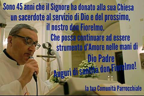 Stasera alle ore 19,00, il popolo di Baiano si riunirà nella chiesa di S. Croce per celebrare con don Fiorelmo il dono inestimabile dell’Eucarestia. Oggi don Fiorelmo festeggia i 45 anni di sacerdozio a lui vanno gli auguri da parte di Bassa Irpinia.
