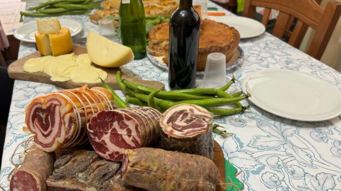 Il Sabato Santo è il giorno in cui la tradizione gastronomica partenopea si concede la prima, simbolica trasgressione. Nonostante la liturgia cristiana inviti ancora alla sobrietà, in molte case già a mezzogiorno si rompe il digiuno con la fellata: un trionfo di salumi e formaggi che segna ufficialmente l’inizio della festa. Salame napoletano, capicollo, pancetta, uova sode a spicchi, ricotta salata tagliata finemente col filo, pane cafone e un bicchiere di vino rosso locale compongono questo antipasto contadino, rustico e saporito, che riunisce le famiglie in un rito tanto semplice quanto sacro.