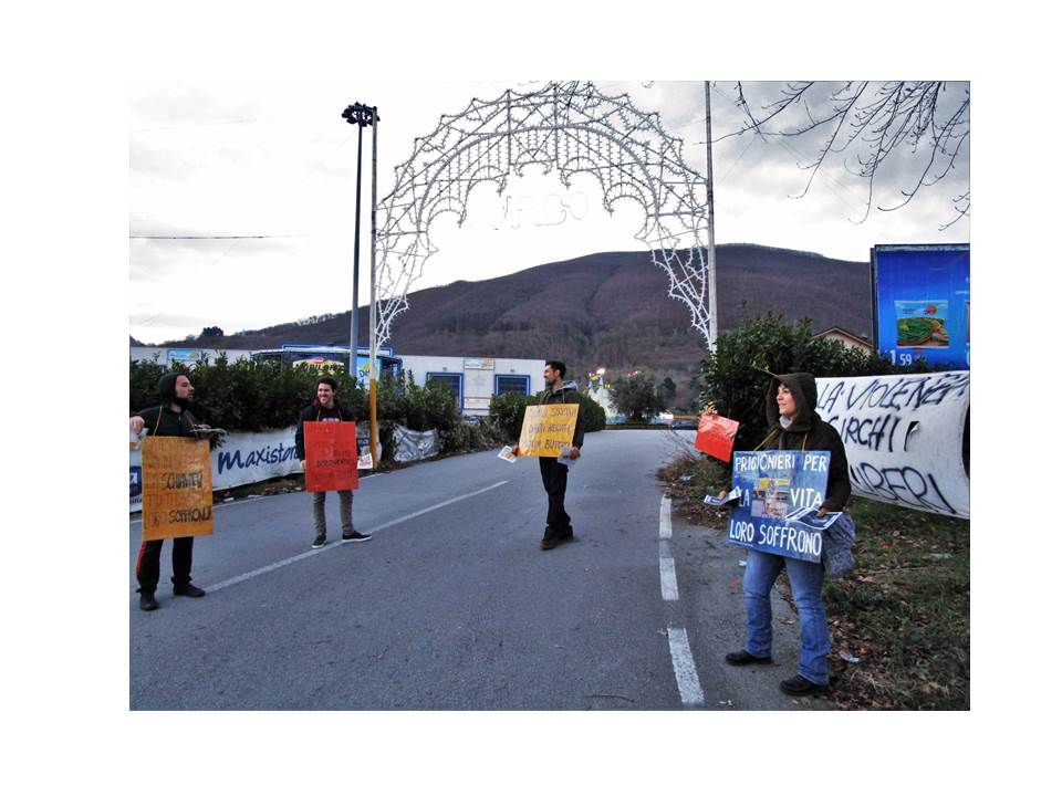 Stranamente, non si è visto il logo di alcuna associazione e per capirne di più è stato intervistato Eduardo Quarta, portavoce dell’evento: <<Questa manifestazione è nata in maniera spontanea ed è espressione del movimento internazionale per la tutela dei diritti degli animali. Noi stessi, promotori e partecipanti, collaboriamo con varie associazioni e ne facciamo anche parte, ma siamo prima di tutto uniti dalla volontà di liberare gli animali dalla schiavitù in cui li abbiamo ridotti. Il nostro è un gruppo di attivisti vegetariani e vegani, non a caso nominato “VEG IN CAMPANIA” e chi desidera conoscerci meglio può trovarci anche su Facebook.>> Compreso chi sono, ai volontari è stato chiesto di spiegare meglio le loro ragioni e proposte: <<Per stravolgere l’istinto di un animale e fargli eseguire “esercizi” innaturali e addirittura pericolosi, è necessario ricorrere alla violenza fisica e psicologica, servendosi di spregevoli mezzi come la fame, la frusta e finanche il pungolo elettrico! Non c’è altro modo. Non meno crudele è la prigionia a vita; proviamo ad immedesimarci. Ingabbiati o incatenati, gli animali del circo impazziscono di tristezza, noia e disperazione. I segnali del loro malessere sono evidenti, basta saperli cogliere: in cattività sviluppano atteggiamenti ‘stereotipati’, come dondolarsi continuamente o girare su se stessi. Noi pensiamo che non ci sia nulla di educativo in tutto questo e che, oltre ad essere un’ingiustizia nei confronti di animali innocenti, il circo sia un insegnamento pericoloso per tutti i bambini che vanno a vederlo. Molti psicologi ci danno ragione: uno show basato sul comando e lo sfruttamento di animali inermi insegna al bambino a ridere di situazioni che dovrebbero invece generare un profondo senso di ingiustizia e indignazione. Anche per questo non possiamo tollerare e condanniamo la scelta dello Stato Italiano di continuare a sovvenzionare i circhi che sfruttano gli animali con cifre elevatissime ricavate ogni anno dal Fondo Unico dello Spettacolo. Sia chiaro che l’unico circo che vogliamo sostenere è quello in cui solo le persone vengono ammirate per le loro capacità artistiche!>> Si, ma cosa farne degli animali del circo? La maggior parte di loro è già nata in cattività e non riuscirebbero a sopravvivere in natura. A questa domanda risponde ancora Eduardo Quarta: <<In Italia ci sono ancora migliaia di animali prigionieri di circhi, zoo e affini. Non possiamo usare la “nascita in cattività” come giustificazione per dare un seguito allo sfruttamento degli animali in condizioni di tale sofferenza. Se è vero che gli animali nati in cattività non sono più in grado di vivere in natura, la nostra proposta è la seguente: vietare anche in Italia l’uso di animali negli spettacoli e affidare gli esemplari attualmente detenuti dai circhi presso centri di recupero specializzati, da cui, quando eventualmente sarà possibile, trasferirli nei grandi santuari dei loro paesi d’origine per continuare a vivere almeno in uno stato di semi-libertà.>> Queste sono le istanze degli attivisti, ma il loro portavoce riferisce di alcune difficoltà riscontrate proprio nell’organizzare la manifestazione a Monteforte Irpino: <<Arroccati nella proprietà del centro commerciale, i circensi si sentono al sicuro: la nostra protesta deve svolgersi sul suolo pubblico, piuttosto lontano dalla biglietteria del circo; ciononostante in passato non sono mancate aggressioni verbali nei nostri confronti. Questa volta la manifestazione si è conclusa come l’avevamo iniziata, ossia pacificamente. Da parte nostra ringraziamo per la loro presenza e collaborazione gli agenti della D.I.G.O.S. e dei Carabinieri. Tuttavia siamo delusi dalla tolleranza che i Comuni usano nei riguardi dei circensi; cosa ci lascia questo circo, quando sarà andato via con il suo seguito di animali schiavizzati?! Un cumulo di manifesti “fuori legge” che degradano l’ambiente urbano e rappresentano un grave danno economico per gli stessi Comuni, i quali non percepiscono né il versamento delle tasse sulle pubbliche affissioni né la riscossione delle doverose sanzioni.>> Spiega ancora Eduardo Quarta, concludendo: <<Si tratta di locandine prive della vidimazione comunale o scaduta, manifesti affissi sulle pertinenze urbane e addirittura frecce che alterano la segnaletica stradale ancora visibili a Monteforte Irpino, Mercogliano, Avellino e Atripalda. Speriamo che in futuro i funzionari pubblici siano più solerti, mentre noi continueremo a batterci per dare voce agli animali e chiedere misure più adeguate al loro benessere.>>