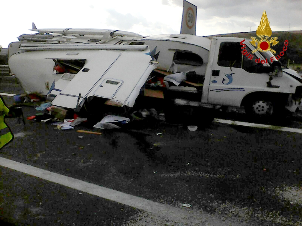 I Vigili del Fuoco del distaccamento di Bisaccia, nel primo pomeriggio di oggi 23 agosto, sono intervenuti sull’autostrada A 16, Napoli – Canosa, nel territorio del comune di Lacedonia, in direzione Napoli, per un incidente stradale che ha visto coinvolti un camper ed un’autovettura. Per cause ancora in corso di accertamento l’auto tamponava violentemente il camper, il quale per l’urto si ribaltava; al suo interno vi era una famiglia originaria di Portici nel Napoletano, marito, moglie e tre figli, i quali sono stati soccorsi e trasportati dai sanitari del 118 presso l’ospedale di Foggia per le cure del caso. Per quanto riguarda il conducente dell’autovettura, non ha subito grosse conseguenze. Il pesante automezzo è stato messo in sicurezza.