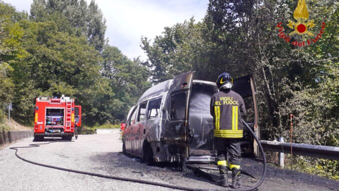 I Vigili del Fuoco di Avellino durante la mattinata di oggi 3 settembre, sono intervenuti a Mercogliano sulla SP EX SS 374, via Partenio la strada che porta al Santuario di Montevergine, per un incendio di un pulmino in transito, adibito al trasporto di persone disabili. A bordo del veicolo vi era una persona disabile e due accompagnatori i quali erano riusciti a mettersi in salvo, e per loro oltre tanto spavento nessuna conseguenza di rilievo. Le fiamme che hanno avvolto il pulmino sono state spente unitamente ad alcune sterpaglie che avevano preso fuoco a bordo strada.