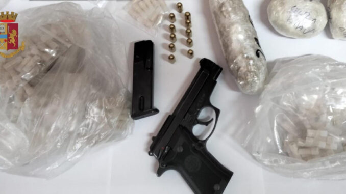Ieri mattina gli agenti del Commissariato Ponticelli hanno effettuato un controllo presso l’appartamento di un uomo in via Molino Saluzzo dove hanno rinvenuto, all’interno della lavatrice, 3 involucri e 33 cilindretti contenenti 925 grammi circa di eroina mentre, sotto il piano cottura, una pistola semiautomatica marca Beretta cal. 9 con 11 cartucce e con matricola abrasa.
