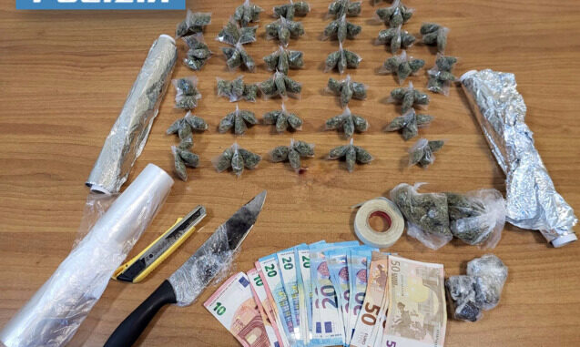 Inoltre, essendovi fondato motivo di ritenere che potessero esservi ulteriori elementi in ordine ai fatti per quali si stava procedendo, gli operatori hanno effettuato un controllo presso la sua abitazione dove hanno rinvenuto all’interno del forno da cucina altri 104 involucri di mairjuana del peso complessivo di 156,46 grammi, 4 involucri di hashish del peso complessivo di 62,14 grammi, un coltello intriso di sostanza stupefacente, un taglierino, diverso materiale per il confezionamento della droga e 550 euro, suddivisi in banconote di vario taglio.