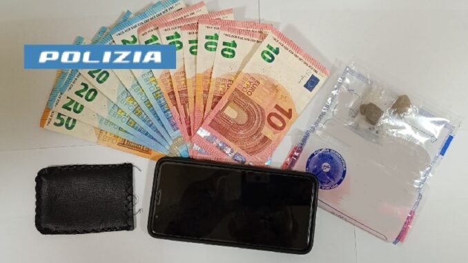 Gli operatori, prontamente intervenuti per interrompere l’iter criminoso, hanno raggiunto e bloccato l’indagato trovandolo in possesso di due involucri di cocaina del peso di circa 1 grammo, due pezzi di hashish di circa 2,8 grammi e 210 euro suddivisi in banconote di vario taglio.
