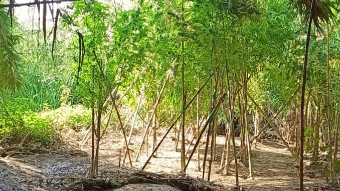 Una piantagione di marijuana pronta per essere raccolta, a due passi dal torrente con tanto di materiale per l’irrigazione e il fertilizzante.