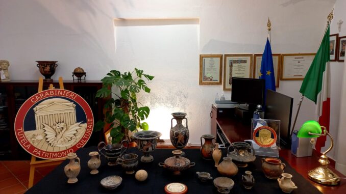 Il 04 aprile 2022, alle ore 10:00, in Nola (NA), il Nucleo Carabinieri Tutela Patrimonio Culturale di Napoli restituirà alla locale Soprintendenza A.B.A.P per l’Area Metropolitana di Napoli, 18 reperti di rilevante interesse archeologico, sequestrati ad un collezionista privato, in quanto provento di reato. I beni, databili tra il V ed il III secolo a.C., sono prevalentemente costituiti da vasellame prelevato da corredi funerari antichi, come crateri, anfore, skyphoi, unguentari, hydriai, ollette e gutti. Rinvenuti inoltre nella disponibilità dell’indagato diversi manufatti di area mesoamericana importati illecitamente.