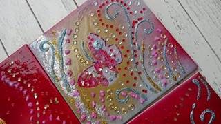 Un talismano di colori, di materiali che prendono vita e splendono come pagliuzze di sole, di luna, tra l’oro e le carezze, di brividi d’arte autentica.